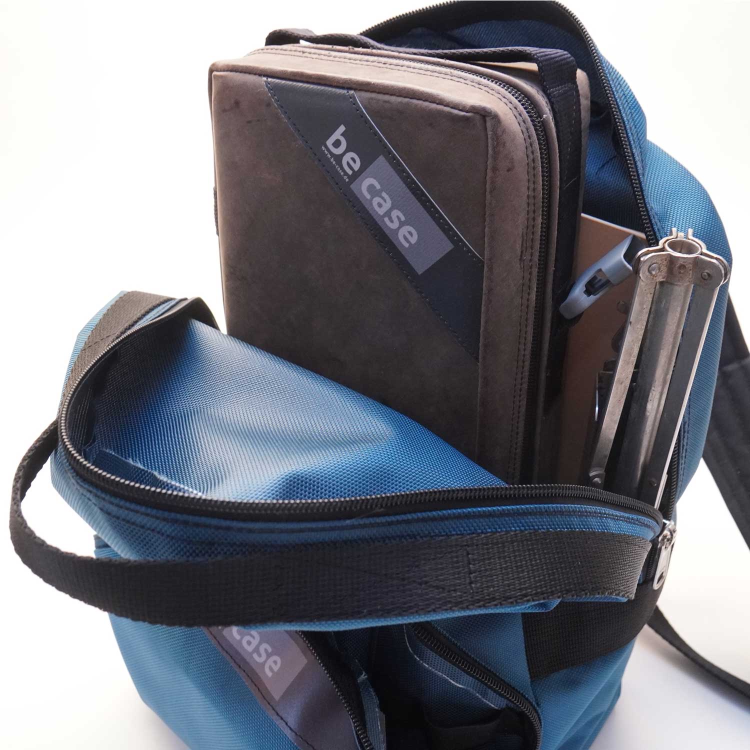 Jetzt gibt es endlich den passenden Rucksack für alle be-case „Solo“-Modelle. Darin ist Raum genug für das Instrument und Notenpult, mit separatem Noten/Tablet-Fach, großer Aufsatztasche mit Platz für Handy und Schreibutensilien und allem, was für die Probe und das kleine Engagement nötig ist. Die angefüllten Bilder sind natürlich nur beispielhaft.